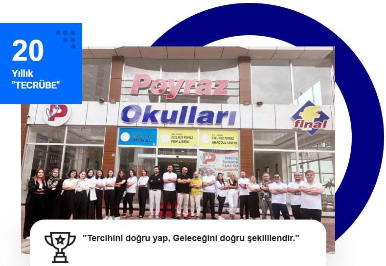 "2004 yılında RİZE Final Eğitim Kurumu olarak eğitim vermeye başlayan Final Eğitim kurumumuz sayısız başarının ardından isim değiştirerek Poyraz Okulları olarak yeni bir vizyon aynı yönetim kadrosu aynı eğitim anlayışı ve yükselen hedefleri ile yolumuza devam etmekteyiz."